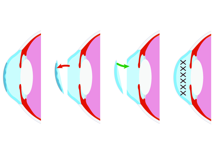 - Anterior lamellar keratoplasty is used to remove the front part of corneal tissues, including the epithelium and stroma layers while keeping the back tissue layers untouched. Then the donor’s tissue is grafted to replace the removed tissues.